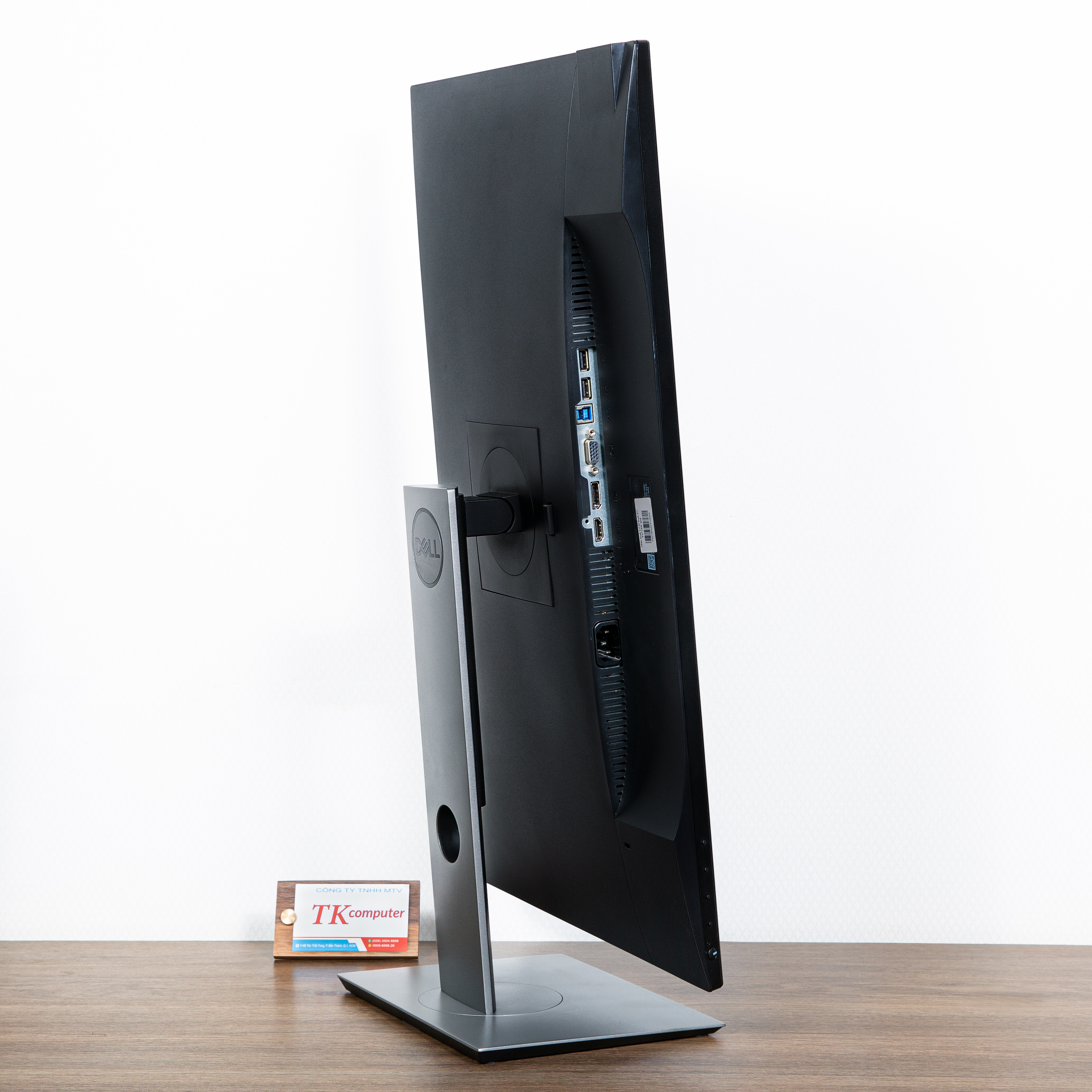 Chân đế được làm nhỏ gọn nhưng chắc chắn, giúp tiết kiệm diện tích bàn và giữ màn hình ổn định khi sử dụng. Tổng thể thiết kế đơn giản, gọn gàng, phù hợp với môi trường văn phòng hoặc làm việc chuyên nghiệp.